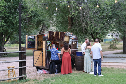 Looking to have a wedding or big event? Have limited event space or venue restrictions? That's where we come in! Our 1976 vintage trailer offers 12 feet of beautifully restored and functional space. Our Buckaroo has been fully modeled as an aged roadside service window with deluxe wood paneling interior, outfit with electricity for your lights, keg towers to chill your beverage, speakers for ambiance, and built in lighting.